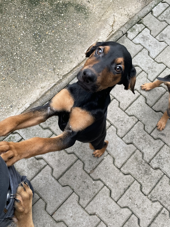 Die Mischung aus Briard und Dobermann ist nicht für komplette Anfänger geeignet und sehr anspruchsvoll. Die neuen Besitzer sollten von Anfang an klare Grenzen aufzeigen und mit Struktur erziehen.