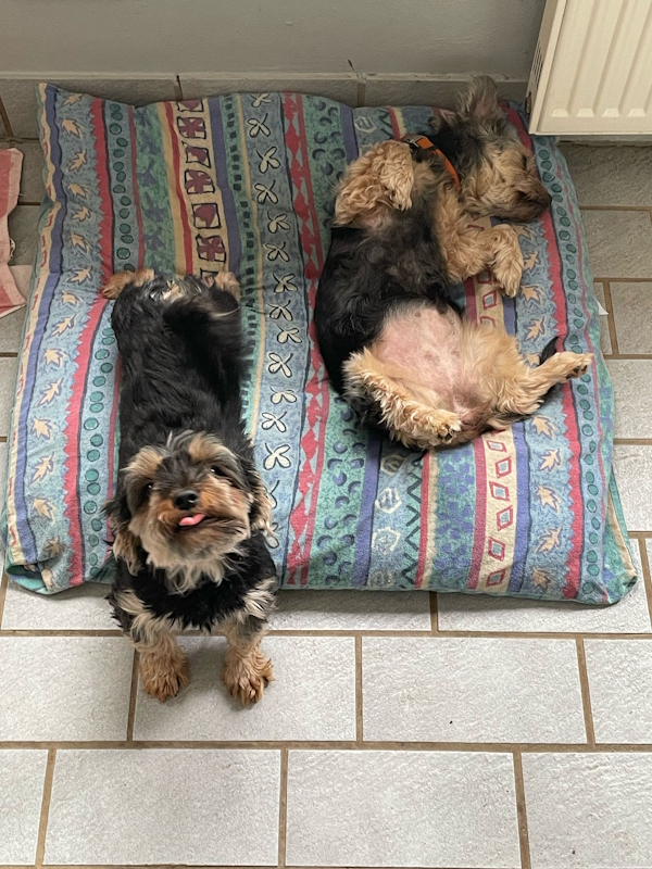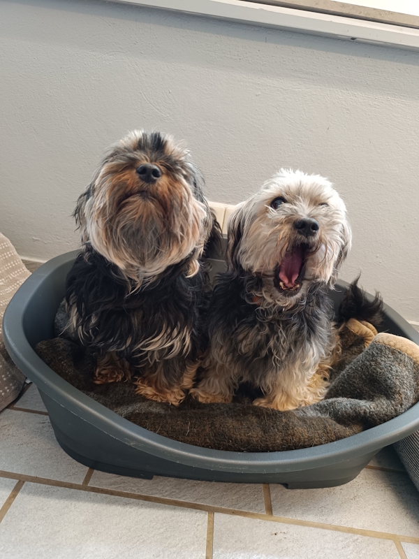 Wir haben sie einmal komplett geschoren, die Zähne bei Molly sind frisch gemacht worden. Beide Hunde sind gesund.