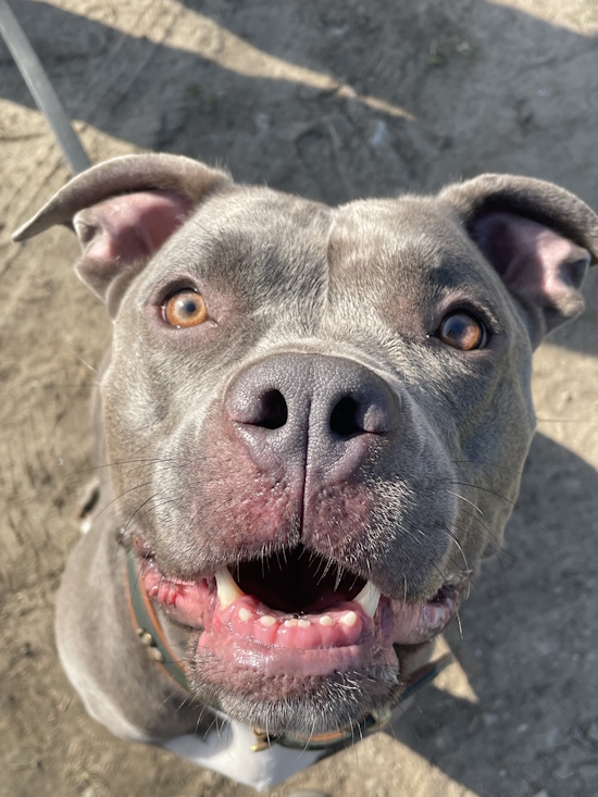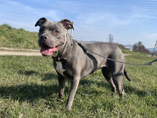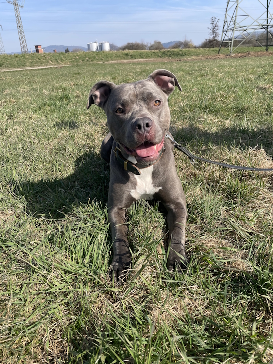 Sie spielt Stafftypisch etwas gröber und springt gerne auch hoch. Wenn also Kinder im Haushalt sind, sollten diese standfest sein. Sie ist super lieb und läuft gut an der Leine. Alleine bleiben kann sie und unkompliziert im Auto mitfahren.