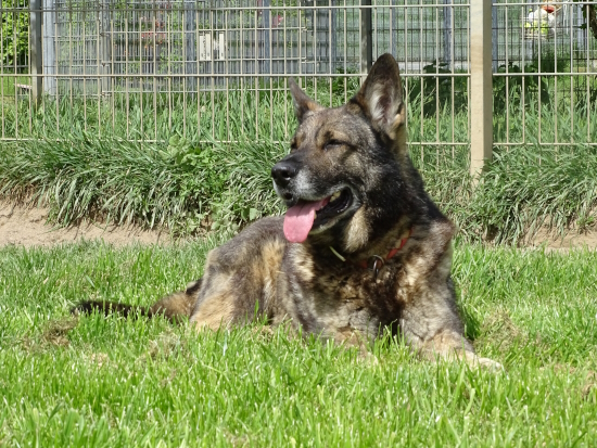 Der große Rüde möchte bei seinen Menschen sein und am Liebsten den ganzen Tag faul in der Sonne liegen, spielen oder schmusen. Er geht noch sehr gerne Gassi und apportiert Ball/Stock/etc.