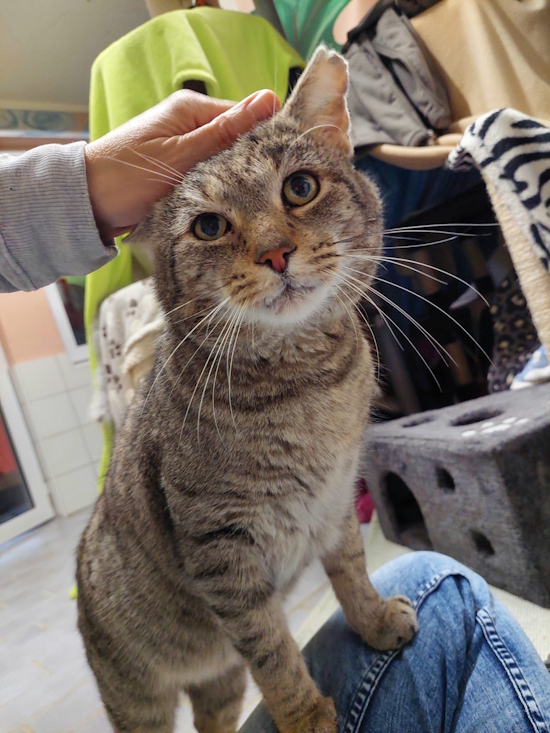 Bei seinen vertrauten Personen beginnt er nach einem kurzen Fauchen Streicheleinheiten richtig zu genießen! Es braucht noch Zeit, bis er sich komplett entspannen kann, aber die erste Hürde ist gemacht.