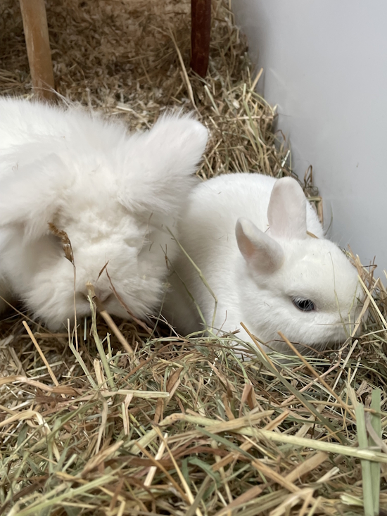 Wuschel ist immernoch etwas misstrauisch gegenüber Kontakt, aber es wird immer besser. Man sollte die Körpersprache der Kaninchen verstehen und ihn auf keinen Fall in die Enge treiben. Wuschel braucht zudem ab und an Fellpflege um die Augen rum. Wir vermuten auch, dass er taub ist.