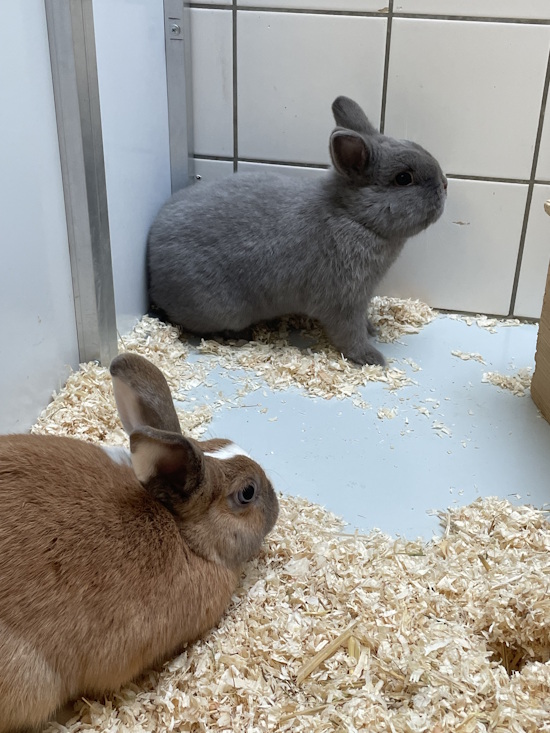 Die beiden Kaninchen wurden im Internet angeboten. Da wir Platz hatten, haben wir sie aufgenommen um ihnen ein artgerechtes Zuhause zu ermöglichen.