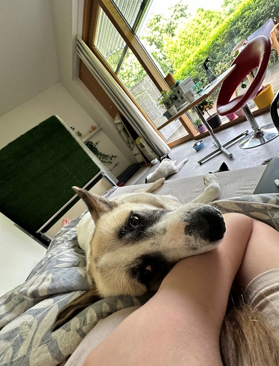 Kyra ist 2019 geboren und lebt seit Welpenalter bei Anna und ihrer Mutter. Sie ist sehr menschenbezogen, schmusig und hat bereits problemlos mit Kindern gelebt. Sie ist aktiv und liebt lange Spaziergänge, läuft dabei gut an der Leine. Aufgrund von etwas Jagdtrieb sollte sie nicht zu Katzen und Kleintieren. Mit Rüden ist sie gut verträglich, mit Hündinnen fast immer (müsste man bei Bedarf ausprobieren). Autofahren, Tierarztbesuche und das Alleinebleiben sind kein Problem. Die hübsche Kyra ist mittelgroß und wiegt um die 20 kg. Sie ist gechippt, geimpft, hat keine Allergien o. ä.