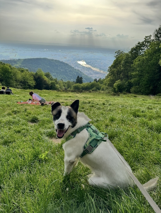 Sehr entspannt, ruhig, souverän, bindet sich sehr eng an den Menschen, läuft an lockerer Leine, spielt gerne Ball, ist gut abrufbar. Lebte schon problemlos mit Katzen zusammen.