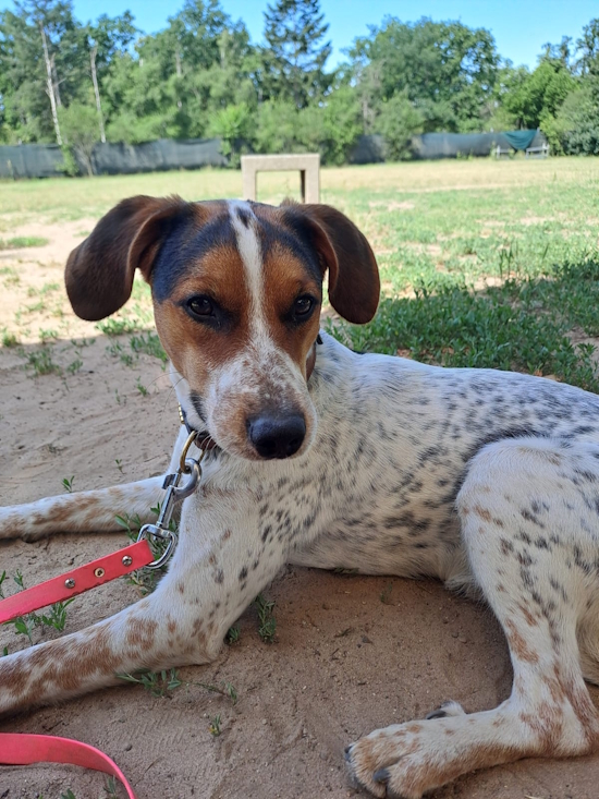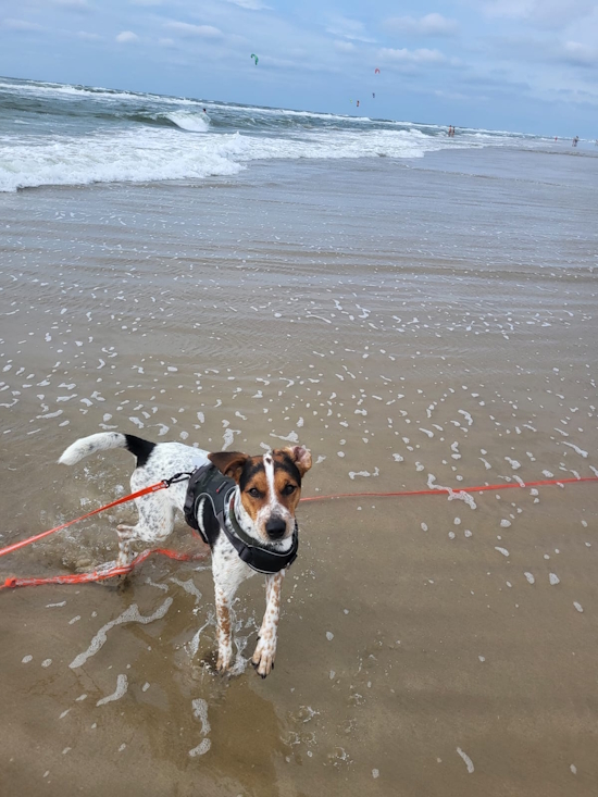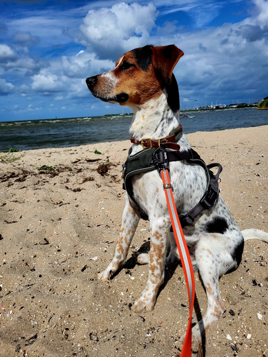 Sunny ist ein echter Wirbelwind: voller Energie, unerschrocken, ausdauernd – und manchmal schwer zu bremsen. Seine Jagdhundgene sind unverkennbar, genauso wie sein Durchhaltevermögen. Noch fehlt ihm allerdings die nötige Gelassenheit: Frust auszuhalten und Ruhe zu bewahren, muss er erst lernen.