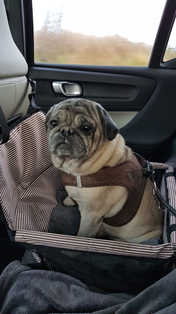 Was uns komplett überrascht hat war, dass er von Anfang an stubenrein war und er das Autofahren sehr mag. Auf die kurze Strecke nach Einhausen ist er sogar auch eingeschlafen.
