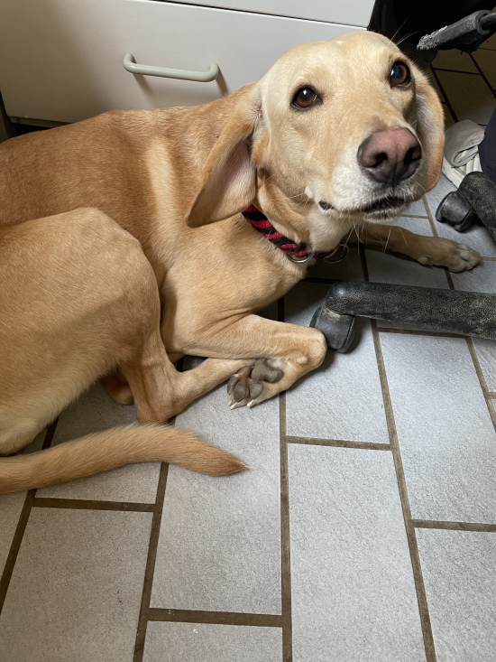 Bei ihrer Rasse sind wir uns noch nicht sicher. Labrador gemixt mit etwas sehr sehr sportlichem. Jagdtrieb hat sie auch schon gezeigt.