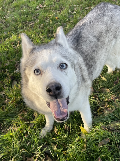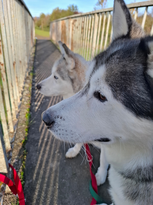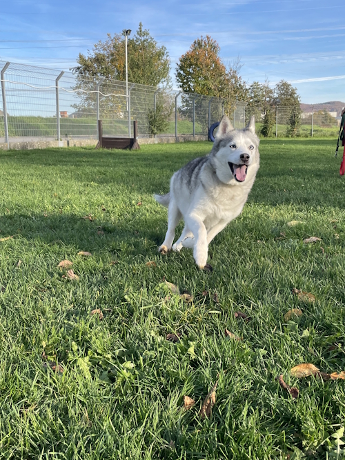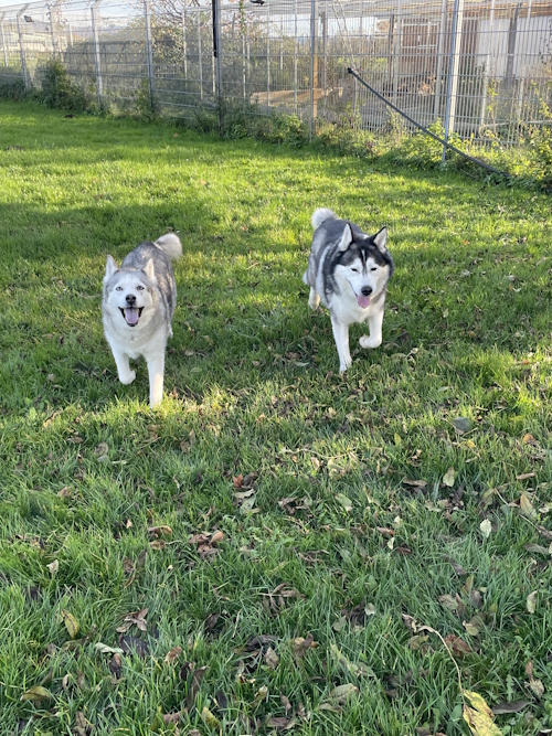 Die beiden Huskies kamen als Abgabe zu uns, da man sich aus gesundheitlichen Gründen nicht mehr um sie kümmern konnte.