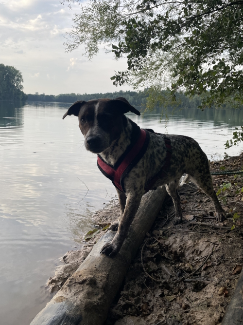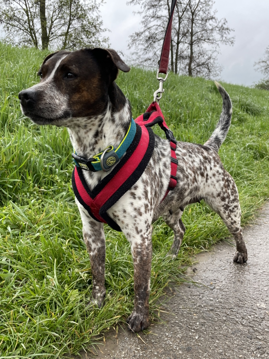 Man sollte sie nicht von der Leine lassen, da sie Jagdtrieb hat. Bisher sieht sie Katzen und kleine Hunde als Beute.