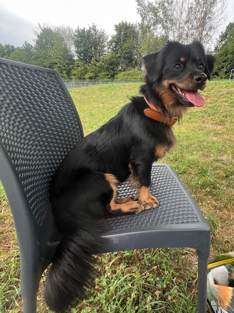 Der kleine Rüde ist sehr menschenbezogen, verspielt und bewegungsfreudig. Er möchte körperlich ausgelastet werden und ist auch mit Hündinnen verträglich.
