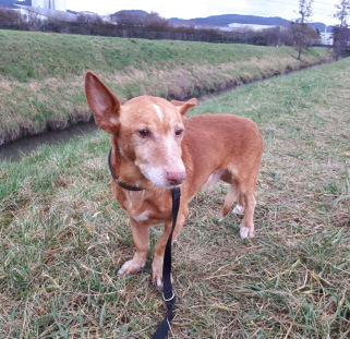 Land ("Länd") ist ein kastrierter Podenco Andaluz Maneto Rüde und kam über einen Verein aus Spaninen nach Deutschland.