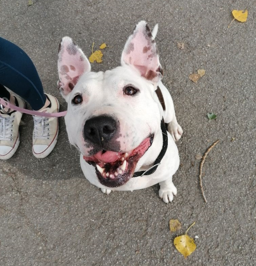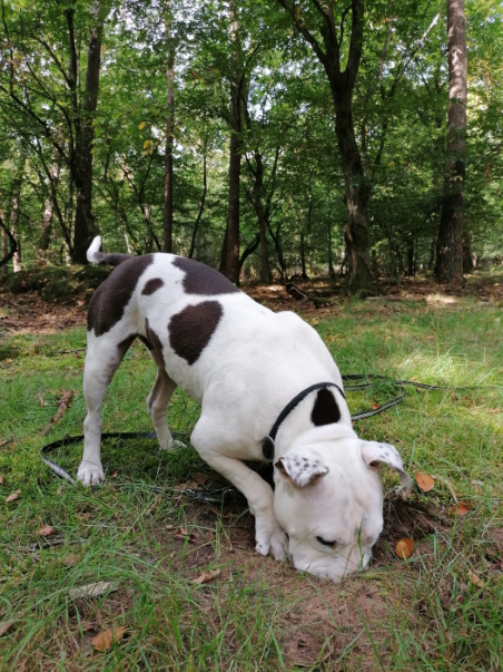 Dafür zeigt sich die Staffordshire-Mix Hündin aber freundlich gegenüber Menschen und je nach Sympathie auch gegenüber anderen Hunden. Sie geht gerne spazieren, genießt Schmuseeinheiten, hat Freude am Toben und kann auch mal alleine bleiben. Leinenführigkeit ist ihr kein Fremdwort.
