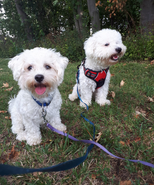 Leyla ist eine aufmerksame und quirlige Hündin. Maxi ist der Entspanntere von beiden.