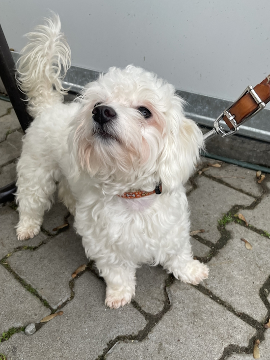 Odette, wie wir sie getauft haben, kennt leider keinerlei Grenzen und wurde nicht erzogen. Sie bellt fremde Menschen an, springt ungefragt auf den Schoß und hat eine sehr kurze Aufmerksamkeitsspanne. Alleine bleiben kann sie nicht lange.
