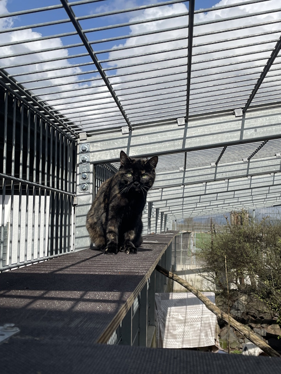 Bellatrix liebt es, auch bei kalten Temperaturen draußen zu sein. Sie hat einen hohen Jagdtrieb und eignet sich gut als Hofkatze.