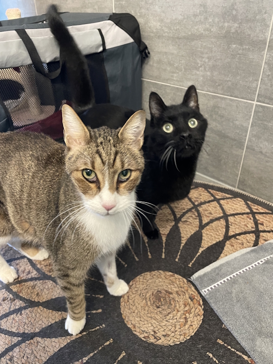 Hanroun, der schwarze Kater, ist ein Jahr älter als sein getigerter Sohn Amir.