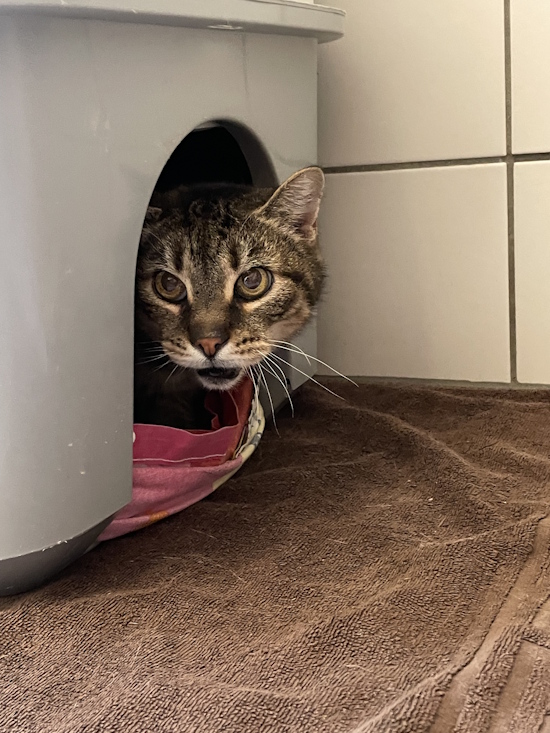 Konrad kam als Fundkater zu uns. Er hatte ein paar Wunden am Körper, hat sich aber gut erholt, sodass er in ein neues Zuhause ziehen kann.