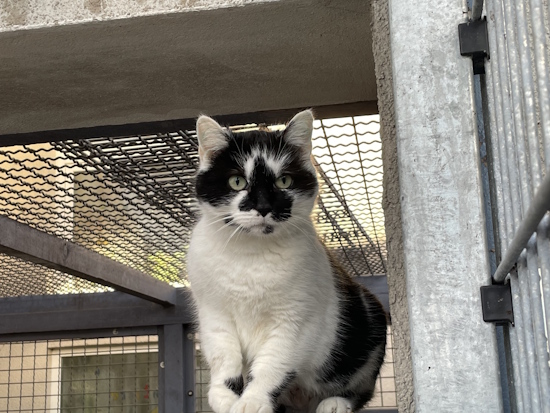 Die schwarz-weiße Katze vertraut Menschen nicht und braucht viel Zeit und ein ruhiges Zuhause zum auftauen.