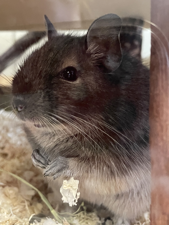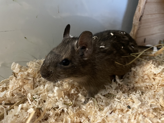 Die Degus kamen aus einer unkontrollierten Vermehrung zu uns. Genaues Alter unbekannt.