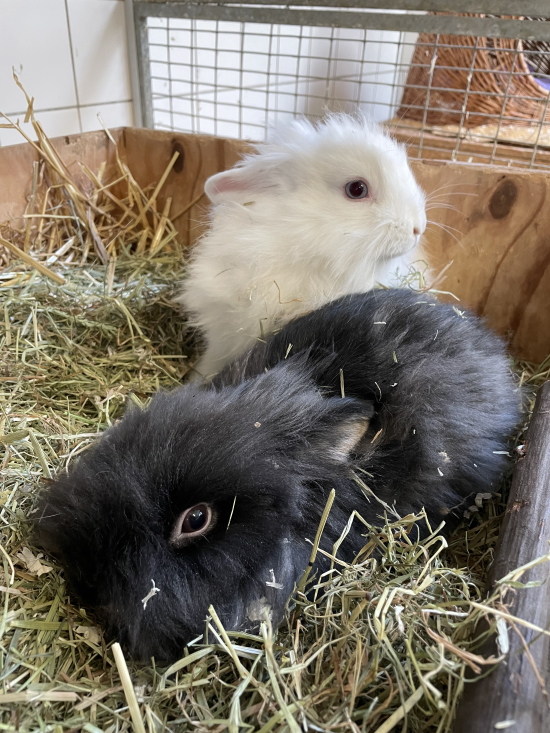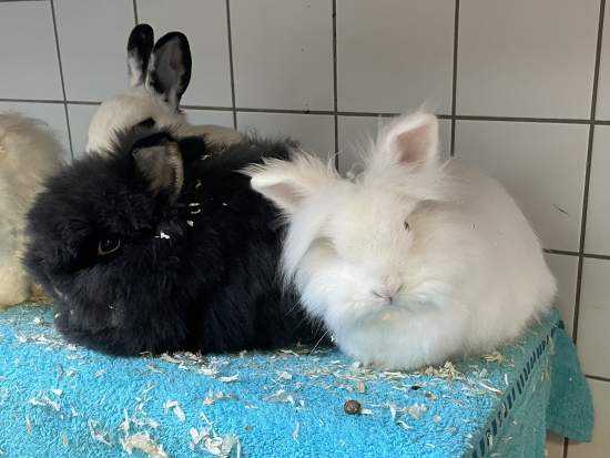 Typisch für diese Rasse ist das sehr lange Fell am ganzen Körper. Tägliches Bürsten und regelmäßiges Frisieren ist besonders wichtig, damit sich kein Filz bildet. Wir vermitteln sie bevorzugt an erfahrene Kaninchenhalter.