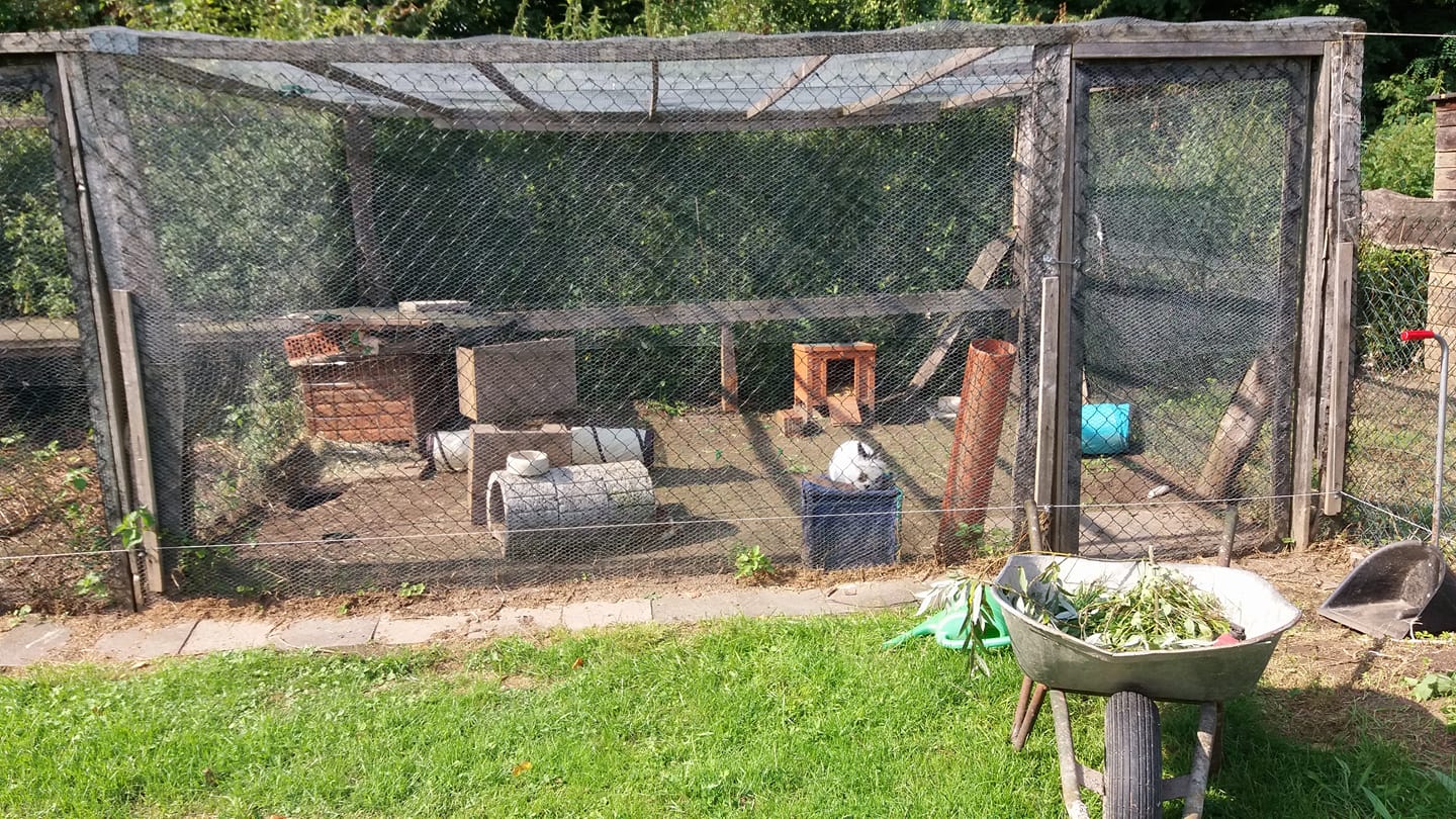 Bei der Außenhaltung muss das Gehege von allen Seiten geschützt sein.