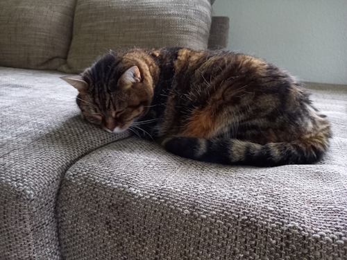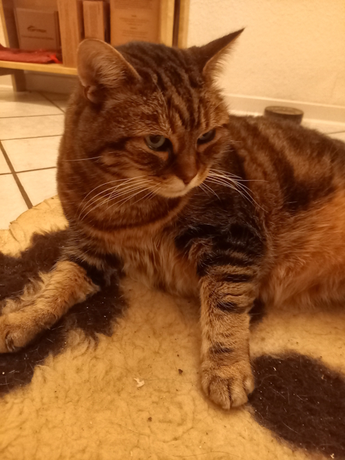 Mauzi ist am 06.07.2009 in Heiligkreuzsteinach zur Welt gekommen und mit 3,5 Monaten zu uns erst nach Dossenheim gekommen und lebt jetzt im 12. Jahr hier mit uns in Schriesheim. Sie ist eher eine Wildkatze und war immer Freigängerin. Allerdings bevorzugt sie mittlerweile meistens, drin zu bleiben, zu fressen und zu schlafen.