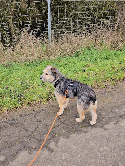 Mila ist intelligent, lernt schnell und setzt Gelerntes gut um. Sehr gerne geht sie spazieren und läuft bereits gut an der Leine.