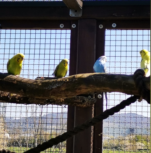 Bunte Wellensittiche fliegen momentan fröhlich durch unser Wildtiergehege.