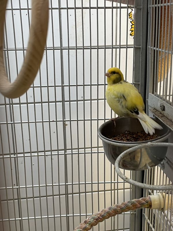 Bällchen sucht ein Zuhause in Gesellschaft mit viel Platz zum Fliegen. Sie sitzt zur Zeit mit unseren 4 weiteren Kanarienvögeln zusammen.