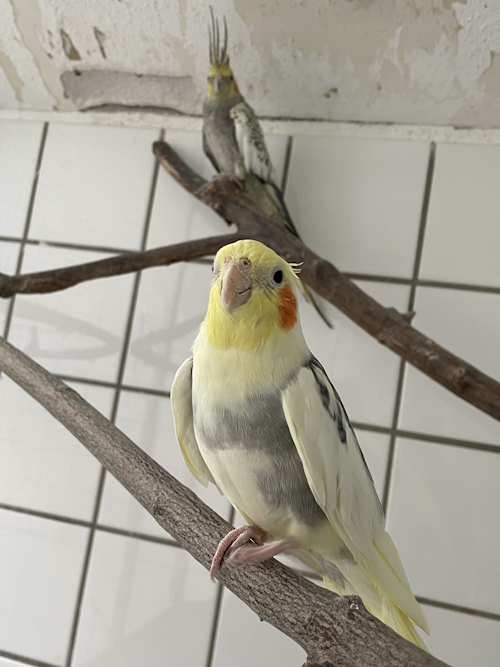 Die beiden Nymphensittich-Hähne suchen zusammen ein neues Zuhause mit weiteren Artgenossen.